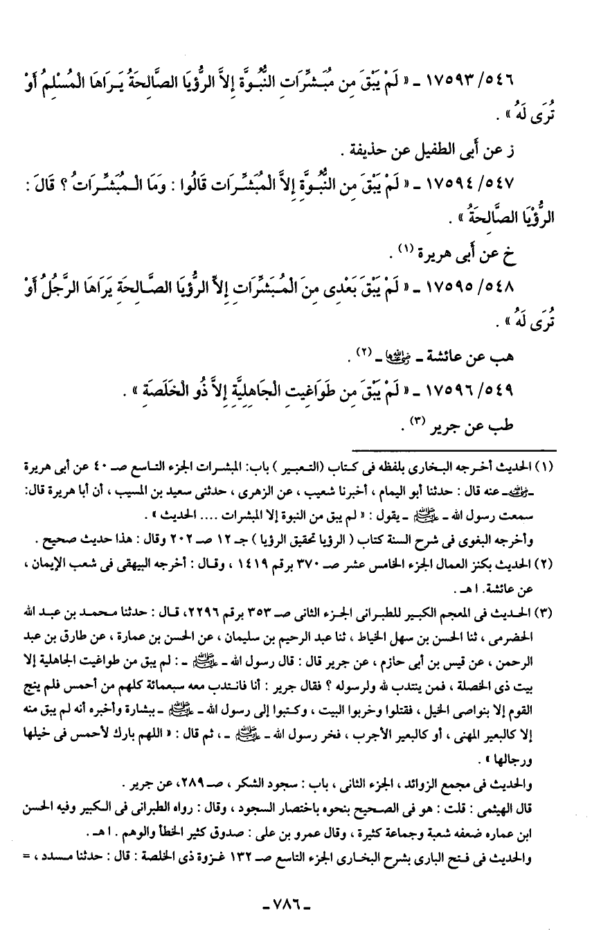 546/ 17593 - "لَمْ يَبْقَ مِن مُبَشِّرَاتِ النُّبُوَّة إِلَّا الرُّؤيَا الصَّالِحَةُ يَرَاهَا الْمُسْلِمُ أَوْ تُرَى لَهُ".
