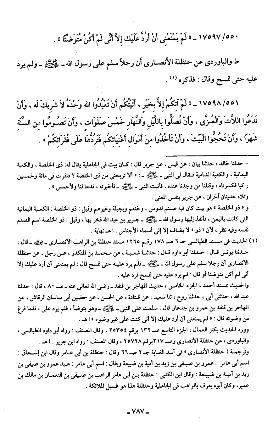 550/ 17597 - "لَمْ يَمْنَعْنِى أَنْ أَرُدَّ عَلَيك إِلّا أَنِّي لَمْ أَكُنْ مُتَوَضِّئًا".