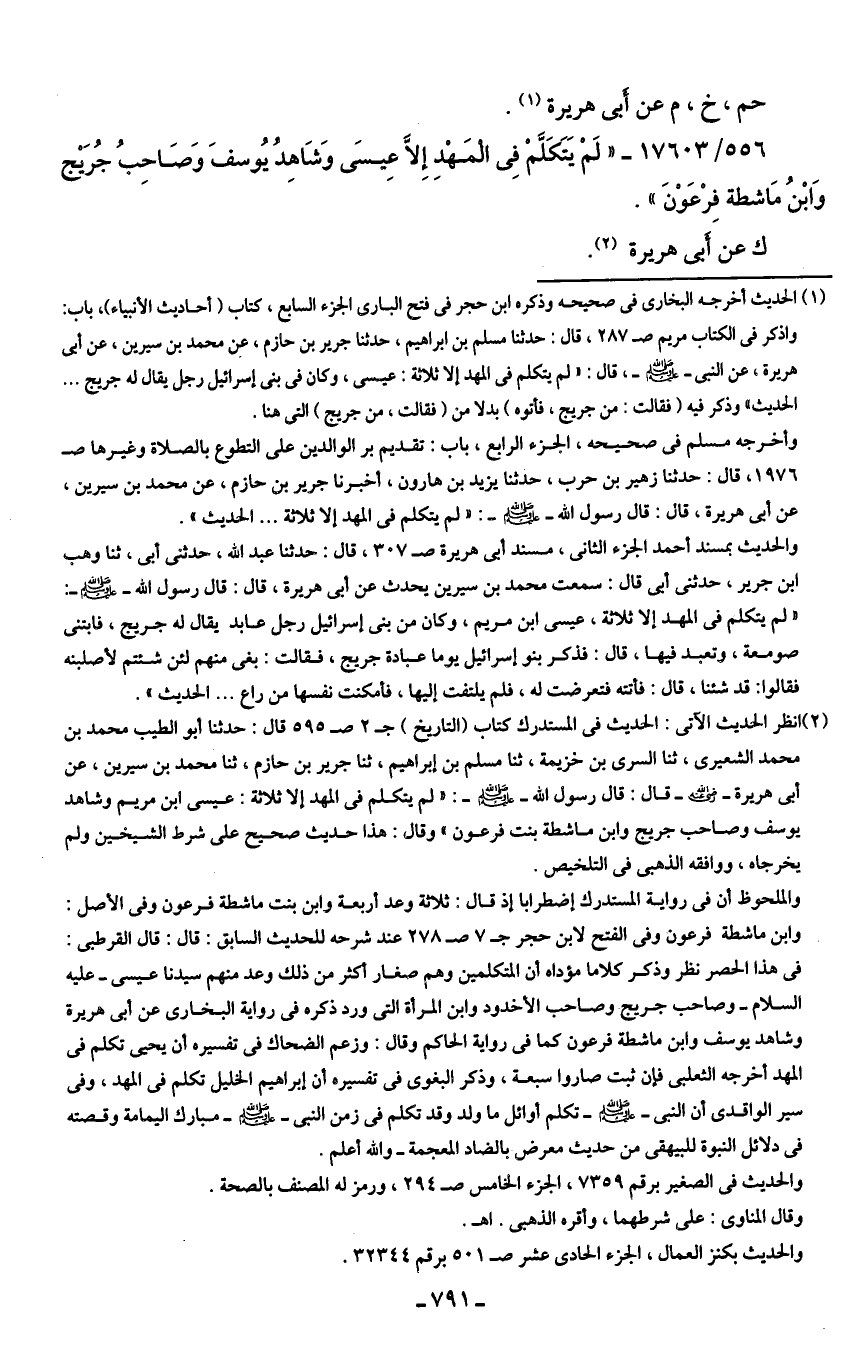 556/ 17603 - "لَمْ يَتَكَلَّمْ في الْمَهْدِ إِلَّا عِيسَى وَشَاهِدُ يُوسفَ وَصَاحِبُ جُرَيج بْنُ مَاشطة فِرْعَوْنَ".