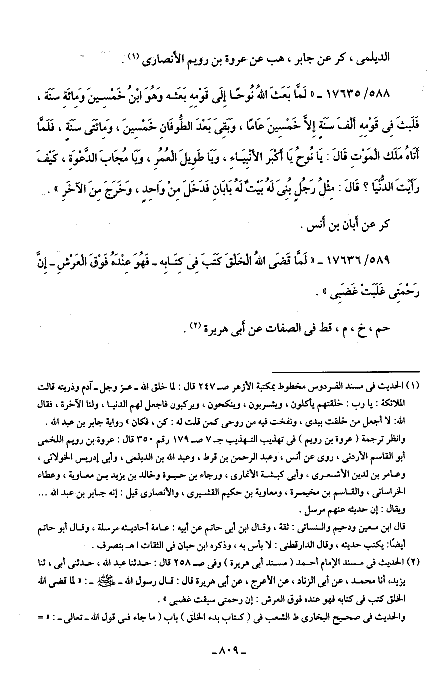 589/ 17636 - "لَمَّا قَضَى اللهُ الْخَلْقَ كَتَبَ فِي كتَابِه - فَهُوَ عِنْدَهُ فَوْقَ الْعَرْشِ - إِنَّ رَحْمَتِى غَلَبَتْ غَضَبِى".
