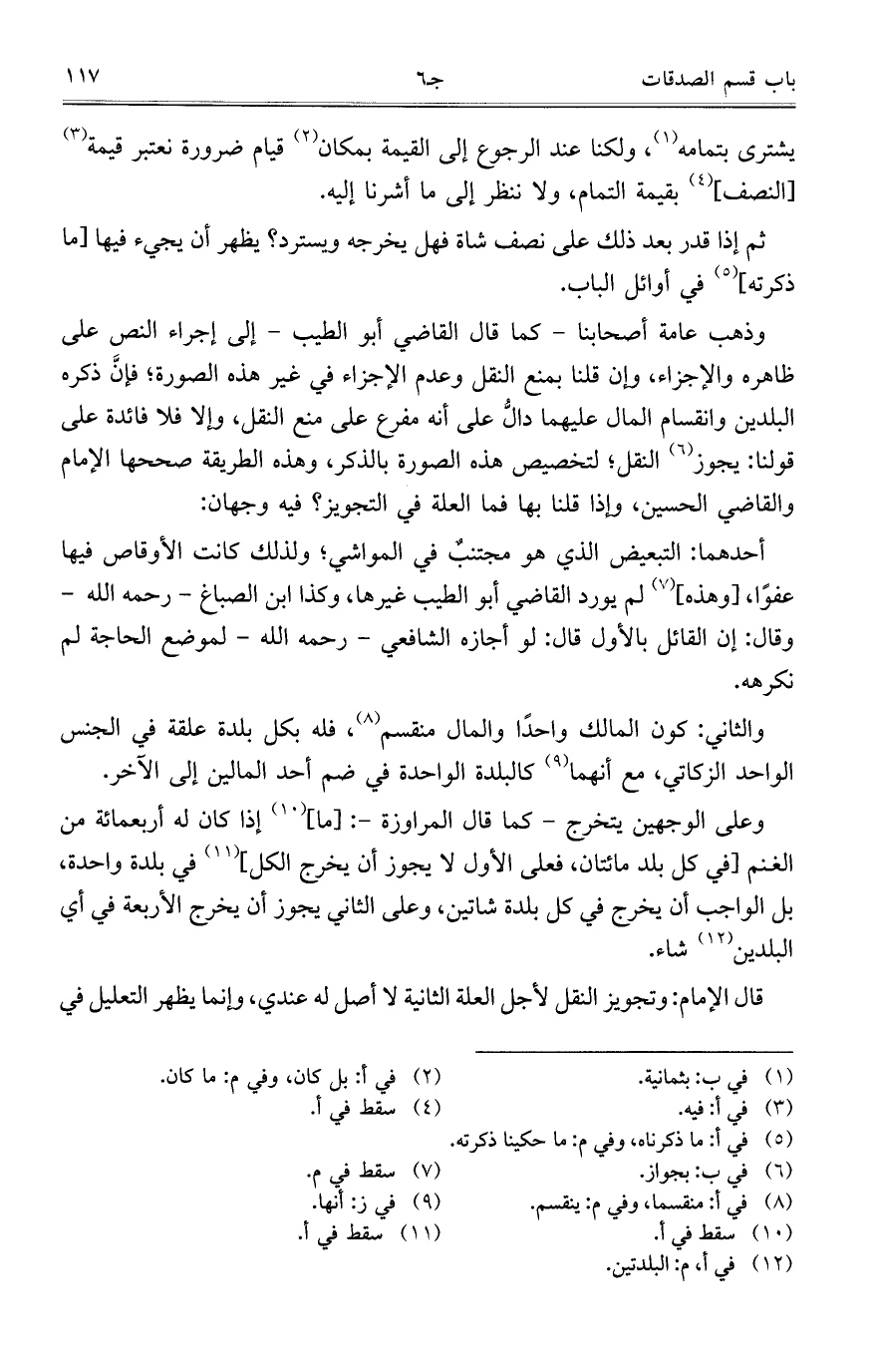 وذهب عامة أصحابنا- كما قال القاضي أبو الطيب – إلى إجراء النص على ظاهره والإجزاء، وإن قلنا بمنع النقل وعدم الإجزاء في غير هذه الصورة؛ فإنَّ ذكره البلدين وانقسام المال عليهما دالٌّ على أنه مفرع على منع النقل، وألا فلا فائدة على قولنا: يجوز النقل؛ لتخصيص هذه الصورة بالذكر، وهذه الطريقة صححها الإمام والقاضي الحسين، وذا قلنا بها فما العلة في التجويز؟ فيه وجهان: