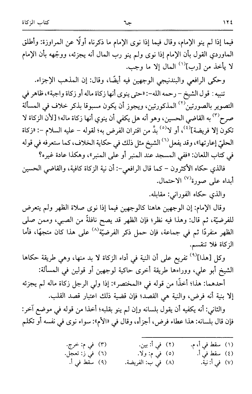 فيما إذا لم ينو الإمام، وقال فيما إذا نوى الإمام ما ذكرناه أولاً عن المراوزة: وأطلق الماوردي القول بأن الإمام إذا نوى ولم ينو رب المال أنه يجزئه، ووجهه بأن الإمام لا يأخذ من [رب] المال إلا ما وجب.