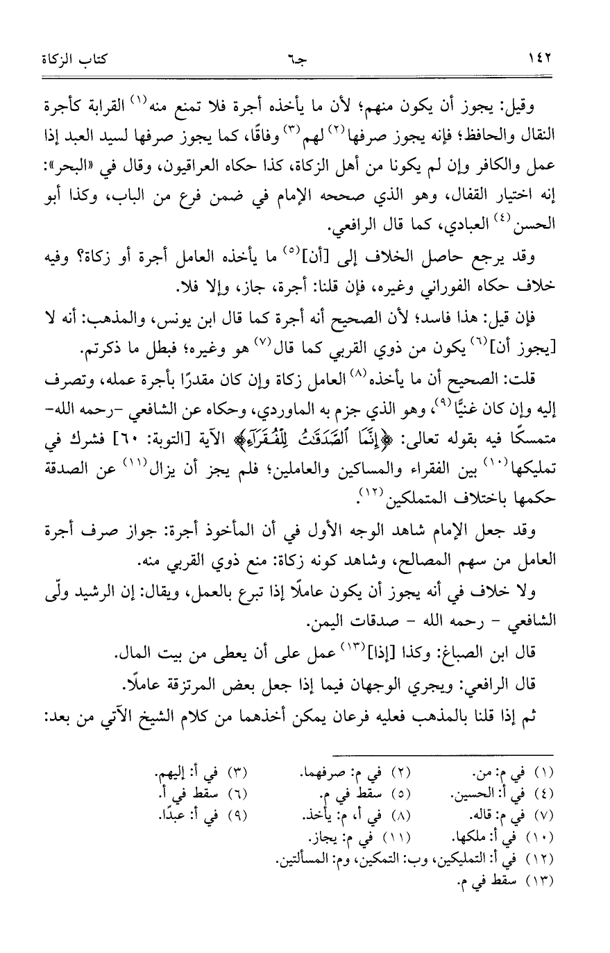 وقد يرج حاصل الخلاف إلى [أن] ما يأخذه العامل أجرة أو زكاة؟ وفيه خلاف حكاه الفوراني وغيره، فإن قلنا: أجرة، جاز، وألا فلا.