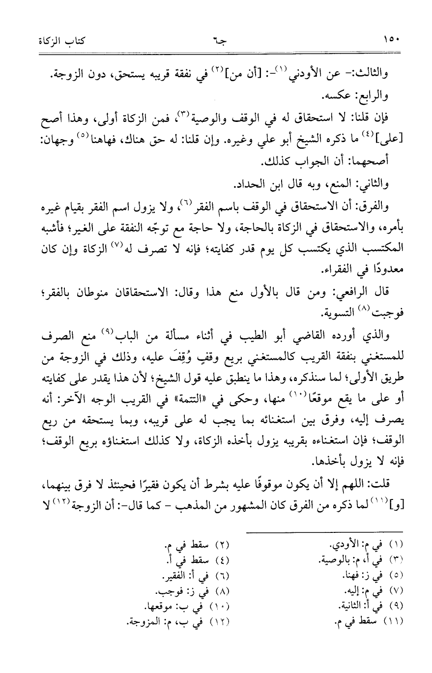 قلت: اللهم إلا أن يكون موقوفاً عليه بشرط أن يكون فقيراً فحينئذ لا فرق بينهما، [و] لما ذكره من الفرق كان المشهور من المذهب- كما قال-: أن الزوجة لا