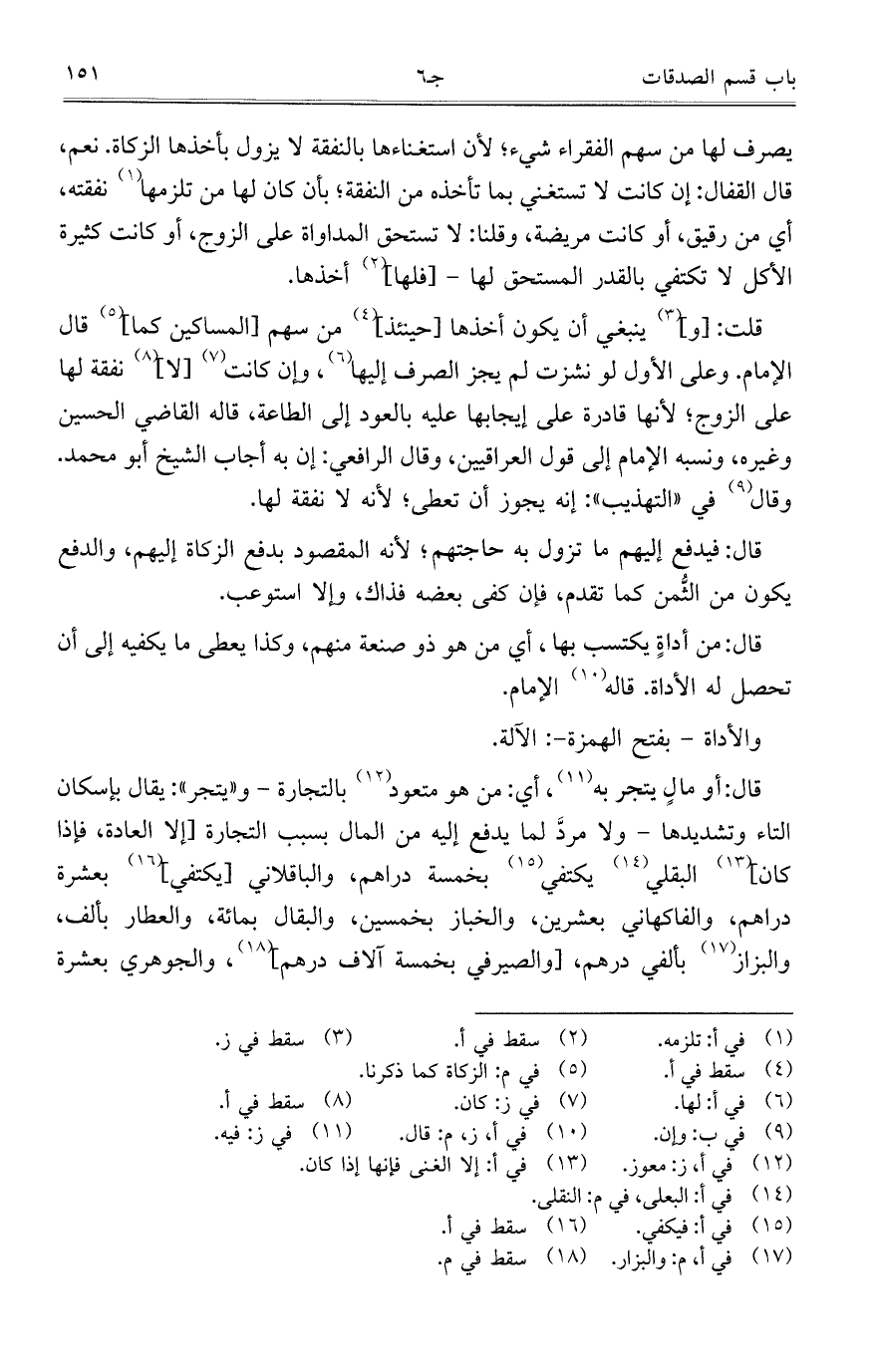 قال: أو مالٍ يتجر به، أي: من هو متعود بالجارة – و"يتجر": يقال بإسكان التاء وتشديدها – ولا مردَّ لما يدفع إليه من المال بسبب التجارة [إلا العادة، فإذا كان] البقلي يكتفي بخمسة دراهم، والباقلاني [يكتفي] بعشرة دراهم، والفاكهاني بعشرين، والخباز بخمسين، والبقال بمائة، والعطار بألف، والبزاز بألفي درهم، [والصيرفي بخمسة آلاف درهم]، والجوهري بعشرة