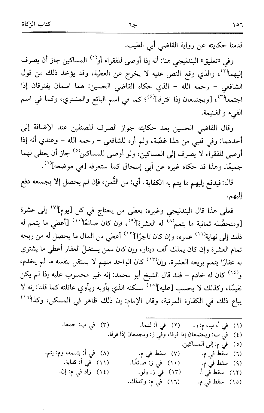 وقال القاضي الحسين بعد حكايته جواز الصرف للصنفين عند الإضافة إلى أحدهما: وفي قلبي من هذا غصة، ولم أره للشافعي – رحمه الله – وعندي أنه إذا أوصى للفقراء لا يصرف إلى المساكين، ولو أوصى للمساكين جاز أن يعطي لهما جميعاً. وهذا قد حكاه غيره عن أبي إسحاق كما ستعرفه [في موضعه].