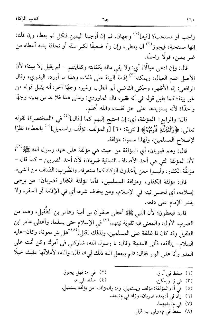 قال: وهم ضربان، أي المؤلفة من حيث هي مؤلفة على عهد رسول الله صلى الله عليه وسلم؛ لأن المؤلفة التي هي أحد الأصناف الثمانية ضربان؛ لأن أحد الضربين – كما قال – مؤلفَّة الكفار، وليسوا ممن يأخذون الزكاة كما ستعرفه. والضَّرب: الصنف من الشيء.
