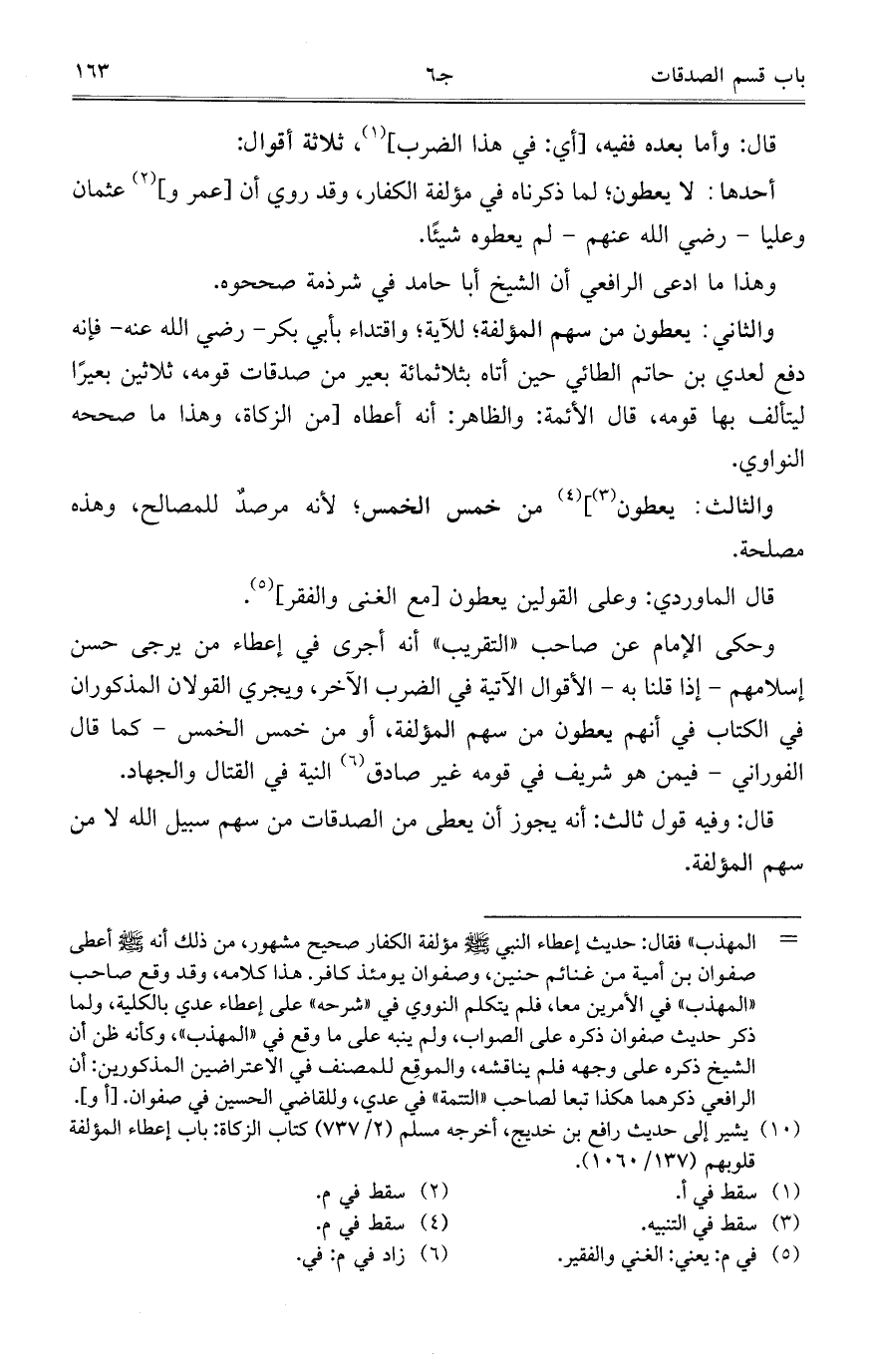 قال: وفيه قول ثالث: أنه يجوز أن يعطي من الصدقات من سهم سبيل الله لا من سهم المؤلفة.