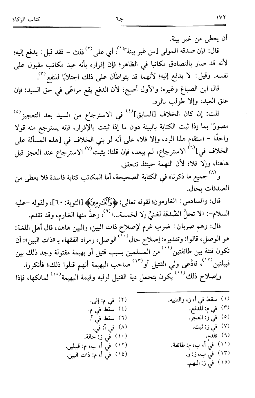 قال: والسادس: الغارمون؛ لقوله تعالى: {الْغَارِمِينَ} [التوبة: 60]، ولقوله – عليه السلام -: "لا تحلُّ الصَّدقة لغنيٍّ إلا لخمسة ... "، وعدَّ منها الغارم، وقد تقدم.