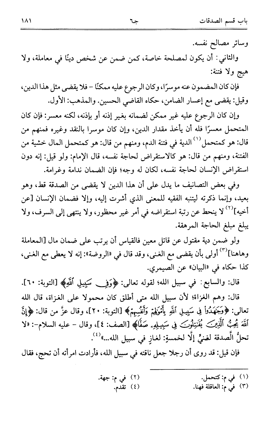 قال: والسابع: في سبيل الله؛ لقوله تعالى: {وَفِي سَبِيلِ اللَّهِ} [التوبة: 60].