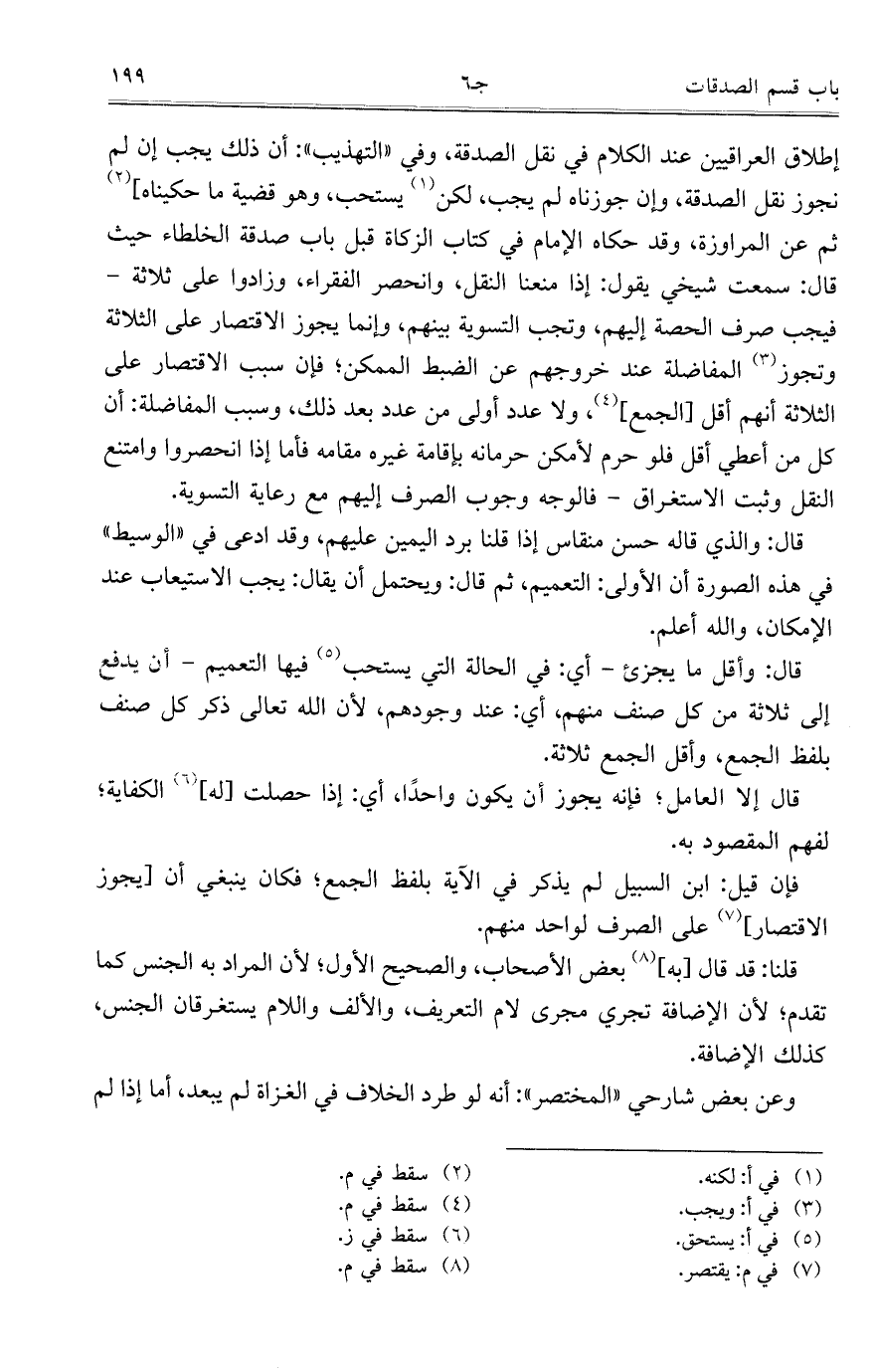 قال: وأقل ما يجزئ-أي: في الحالة التي يستحب فيها التعميم – أن يدفع إلى ثلاثة من كل صنف منهم، أي: عند وجودهم، لأن الله تعالى ذكر كل صنف بلفظ الجمع، وأقل الجمع ثلاثة.