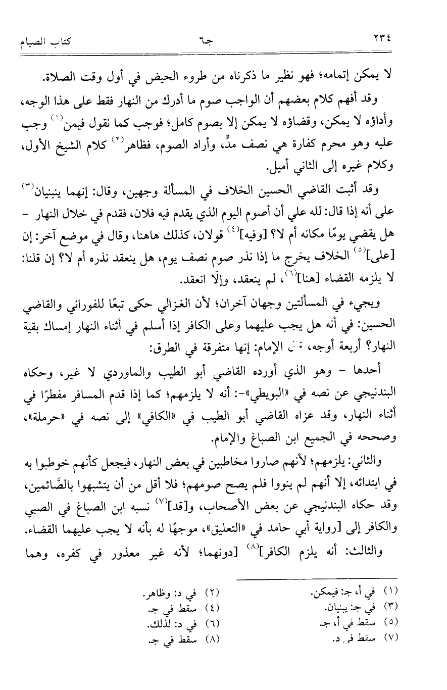 ويجيء في المسألتين وجهان آخران؛ لأن الغزالي حكى تبعاً للفوراني والقاضي الحسين: في أنه هل يجب عليهما وعلى الكافر إذا أسلم في أثناء النهار إمساك بقية النهار؟ أربعة أوجه، فقال الإمام: إنها متفرقة في الطرق: