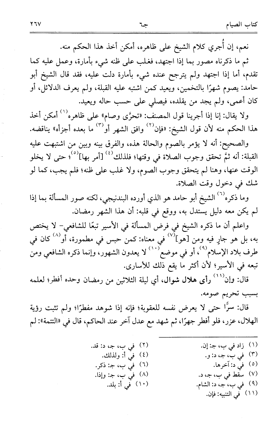 والصحيح: أنه لا يؤمر بالصوم والحالة هذه، والفرق بينه وبين من اشتبهت عليه القبلة: أنه ثمَّ تحقق وجوب الصلاة في وقتها؛ فلذلك [أمر بها]؛ حتى لا يخلو الوقت عنها، وهنا لم يتحقق وجوب الصوم، ولا غلب على ظنه؛ فلم يجب، كما لو شك في دخول وقت الصلاة.