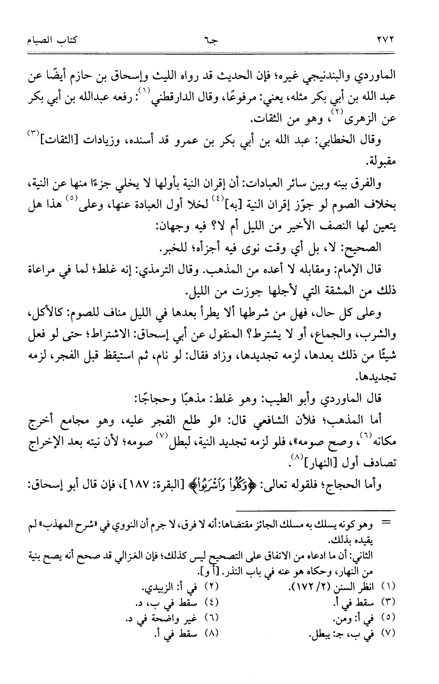 الماوردي والبندنيجي غيره؛ فإن الحديث قد رواه الليث وإسحاق بن حازم أيضاً عن عبد الله بن أبي بكر مثله، يعني: مرفوعاً، وقال الدارقطني: رفعه عبد الله بن أبي بكر عن الزهوي، وهو من الثقات.