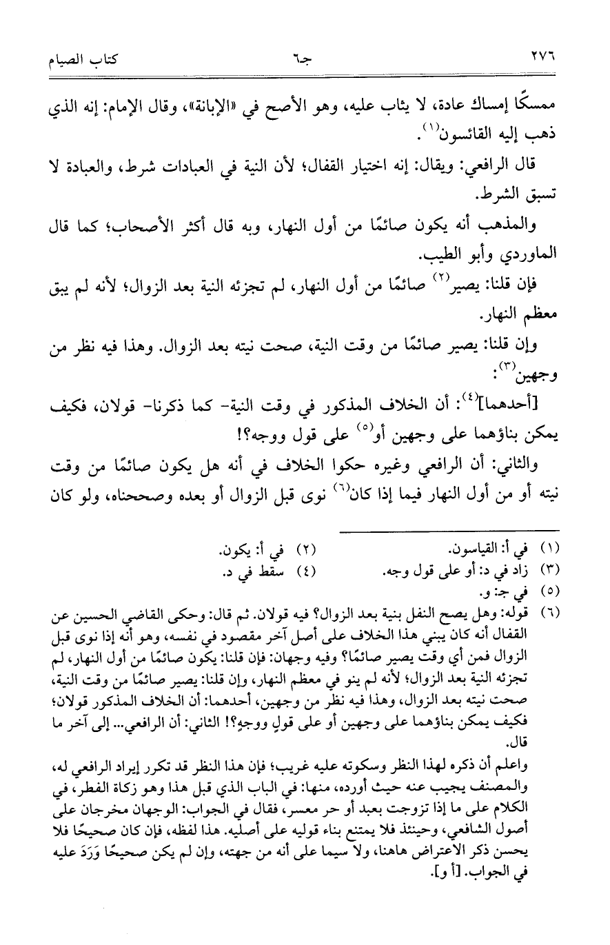 ممسكاً إمساك عادة، لا يثاب عليه، وهو الأصح في "الإبانة"،وقال الإمام: إنه الذي ذهب إليه القائسون.