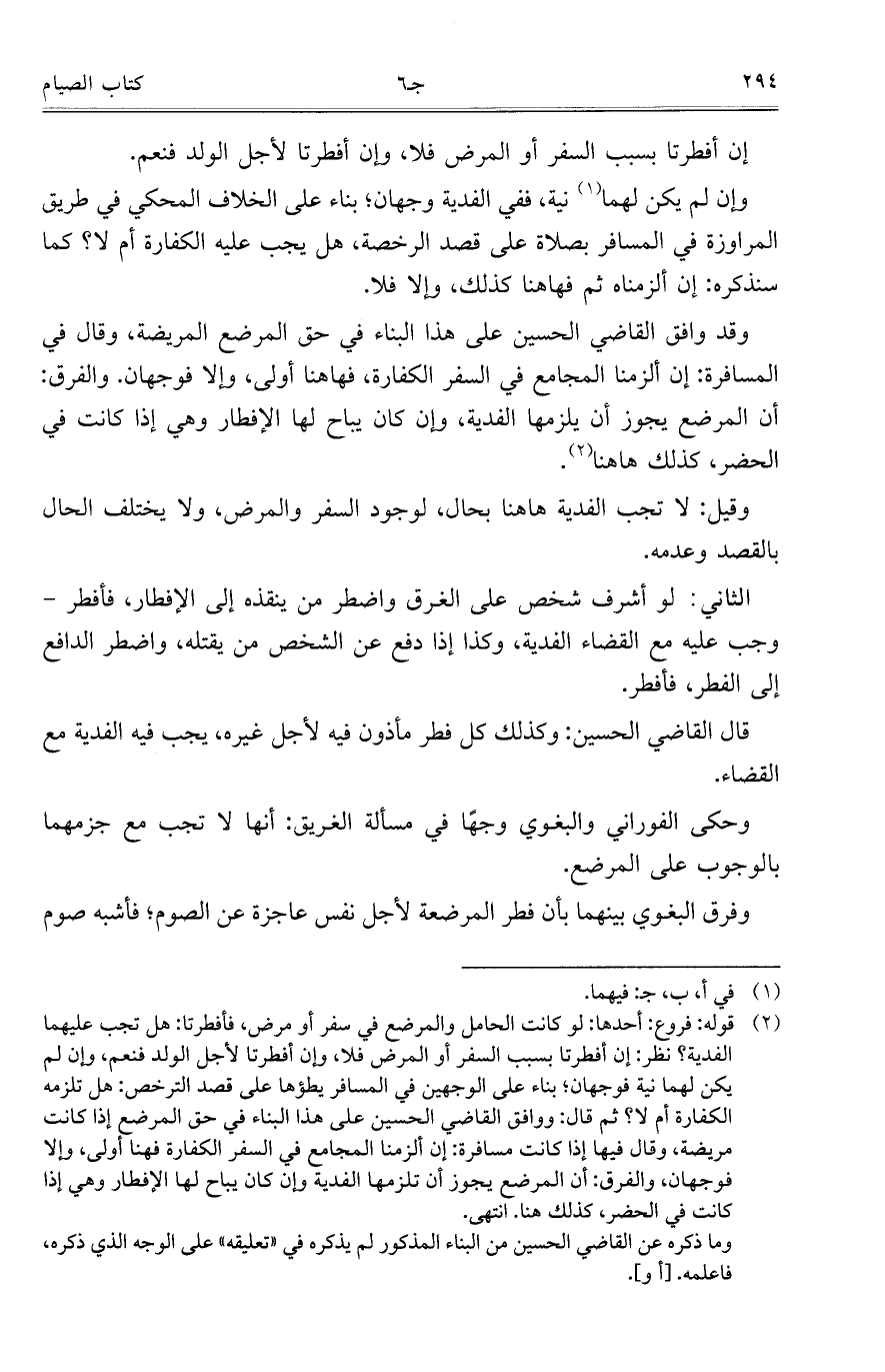وقد وافق القاضي الحسين على هذا البناء في حق المرضع المريضة، وقال في المسافرة: إن ألزمنا المجامع في السفر الكفارة، فهاهنا أولى، وإلا فوجهان. والفرق: أن المرضع يجوز أن يلزمها الفدية، وإن كان يباح لها الإفطار وهي إذا كانت في الحضر، كذلك هاهنا.