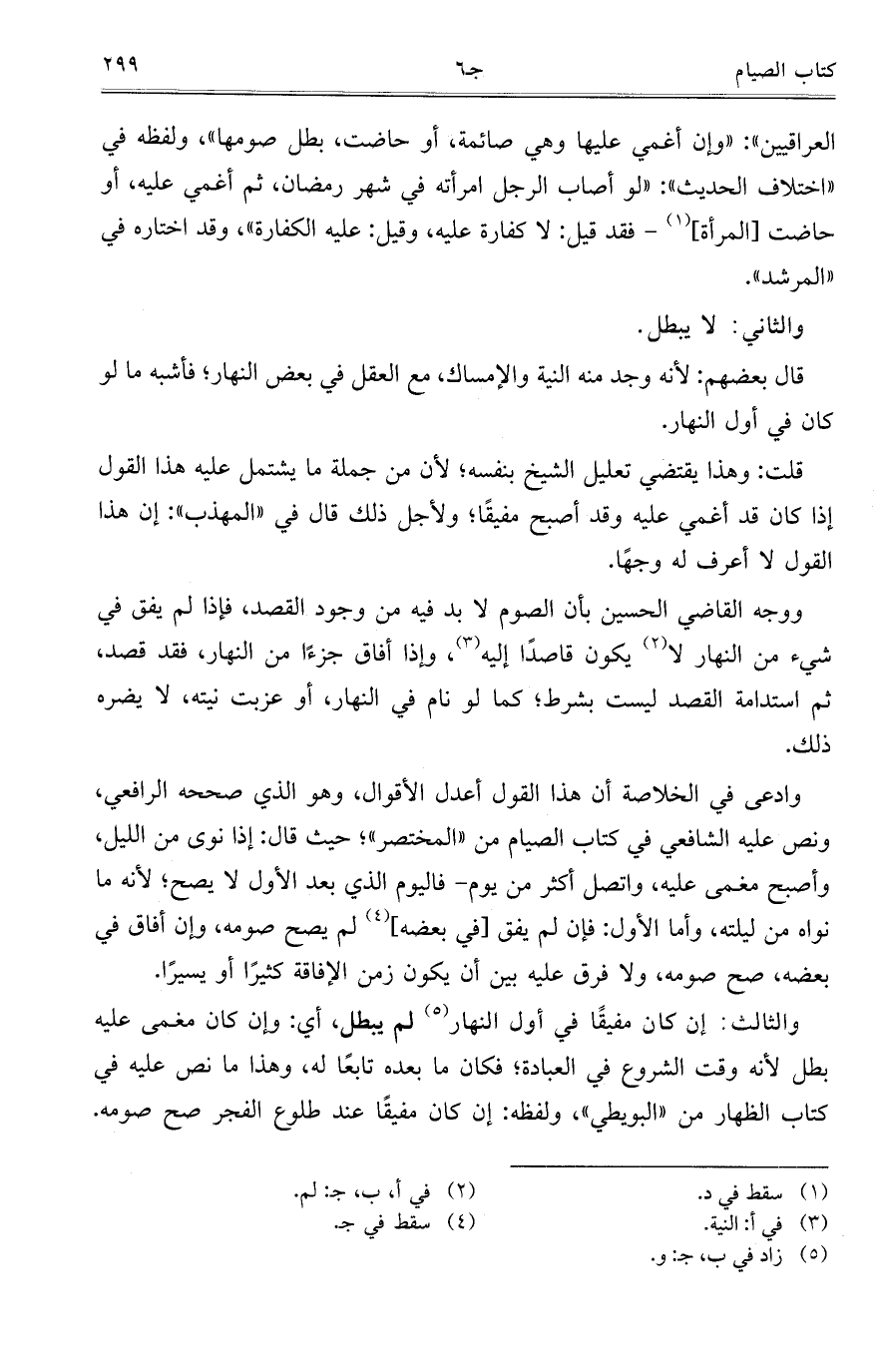 والثالث: إن كان مفيقاً في أول النهار لم يبطل، أي: وإن كان مغمى عليه بطل لأنه وقت الشروع في العبادة؛ فكان ما بعده تابعاً له، وهذا ما نص عليه في كتاب الظهار من "البويطي"، ولفظه: إن كان مفيقاً عند طلوع الفجر صح صومه.