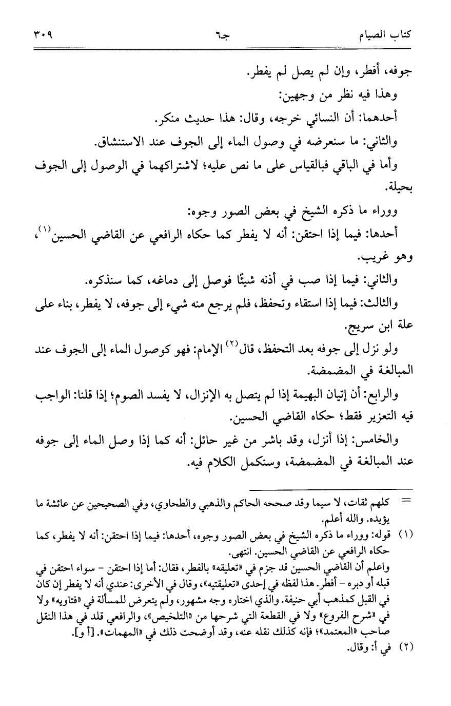 والثاني: ما سنعرضه في وصول الماء إلى الجوف عند الاستنشاق.