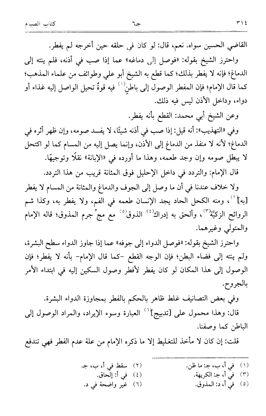 وفي بعض التصانيف غلط ظاهر بالحكم بالفطر بمجاوزة الدواء البشرة.