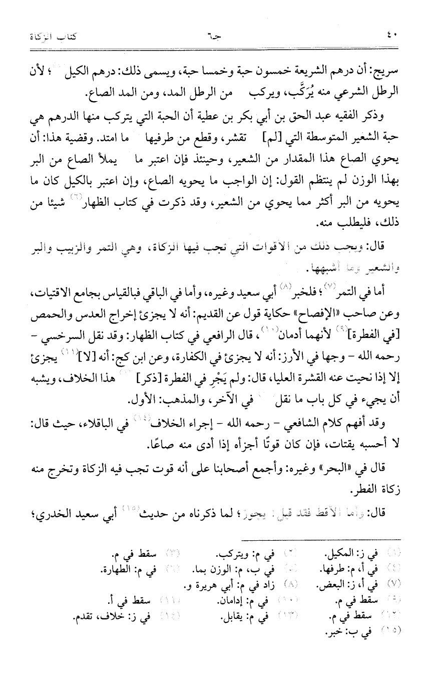 وذكر الفقيه عبد الحق بن أبي بكر بن عطية أن الحبة التي يتركب منها الدرهم هي حبة الشعير المتوسطة التي [لم] تقشر، وقطع من طرفيها ما امتد. وقضية هذا: أن يحوي الصاع هذا المقدار من الشعير، وحينئذ فإن اعتبر ما يملأ الصاع من البر بهذا الوزن لم ينتظم القول: إن الواجب ما يحويه الصاع، وإن اعتبر بالكيل كان ما يحويه من البر أكثر مما يحويه من الشعير، وقد ذكرت في كتاب الظهار شيئاً من ذلك، فليطلب منه.