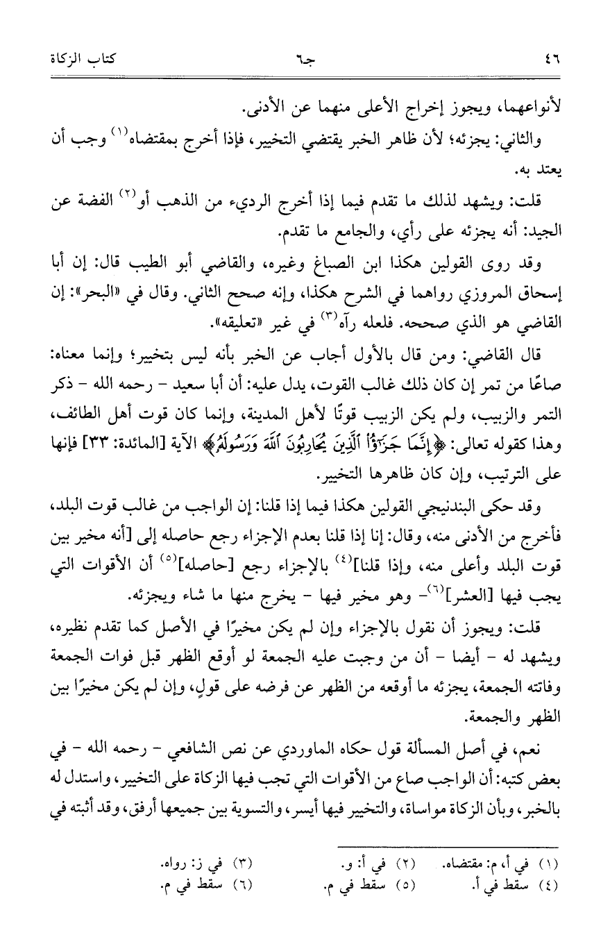 قلت: ويشهد لذلك ما تقدم فيما إذا أخرج الرديء من الذهب أو الفضة عن الجيد: أنه يجزئه على رأي، والجامع ما تقدم.