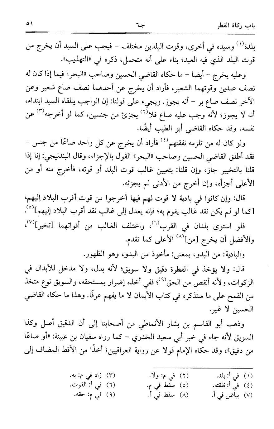 بلدة وسيده في أخرى، وقوت البلدين مختلف – فيجب على السيد أن يخرج من قوت البلد الذي فيه العبد؛ بناء على أنه متحمل، ذكره في "التهذيب".