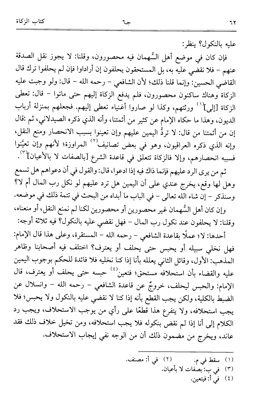 وإن كان أهل السُّهمان غير محصورين أو محصورين لكنا لم نمنع النقل، أو منعناه، وقلنا: لا يحلفون عند نكول رب المال – فهل نقضي عليه بالنكول؟ فيه ثلاثة أوجه: