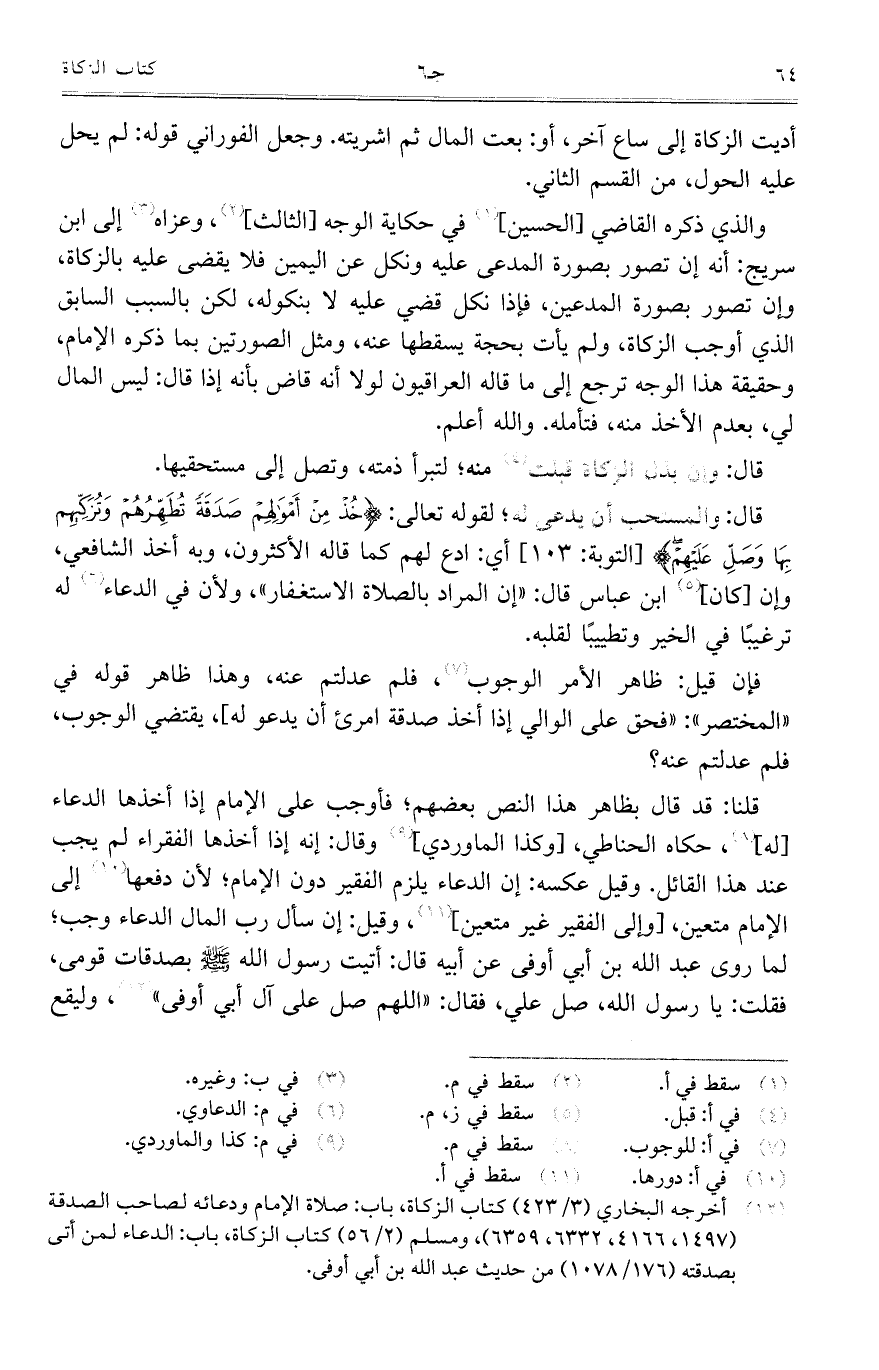 قلنا: قد قال بظاهر هذا النص بعضهم؛ فأوجب على الإمام إذا أخذها الدعاء [له]، حكاه الحناطي، [وكذا الماوردي] وقال: إنه إذا أخذها الفقراء لم يجب عند هذا القائل. وقيل عكسه: إن الدعاء يلزم الفقير دون الإمام؛ لأنا دفعها إلى الإمام متعين، [وإلى الفقير غير متعين]، وقيل: إن سأل رب المال الدعاء وجب؛ لما روى عبدالله بن أبي أوفى عن أبيه قال: أتيت رسول الله صلى الله عليه وسلم بصدقات قومي، فقلت: يا رسول الله، صل علي، فقال: "اللهم صل على آل أبي أوفى"، وليقع