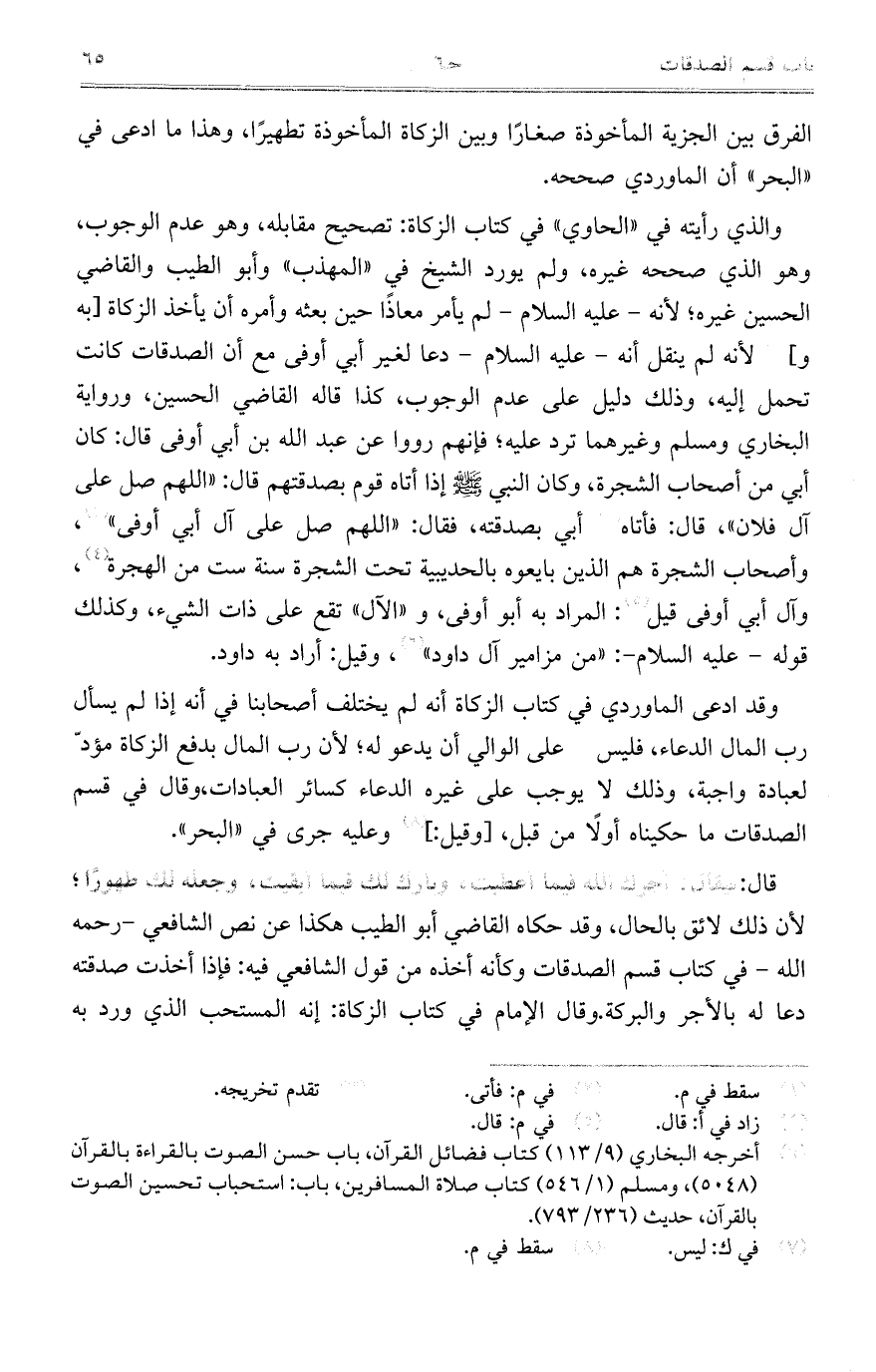 الفرق بين الجزية المأخوذة صغاراً وبين الزكاة المأخوذة تطهيراً، وهذا ما ادعى في "البحر" أن الماوردي صححه.