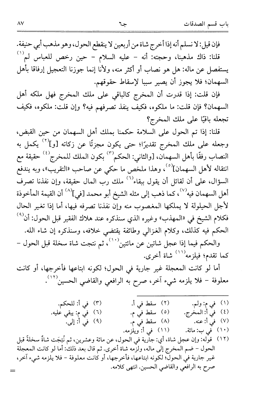 قلنا: ذاك مذهبنا، وحجته: أنه – عليه السلام – حين رخص للعباس لم يستفصل عن ماله: هل هو نصاب أو أكثر منه، ولأنا إنما جوزنا التعجيل إرفاقاً بأهل السهمان؛ فلا يجوز أن يصير سبباً لإسقاط حقوقهم.