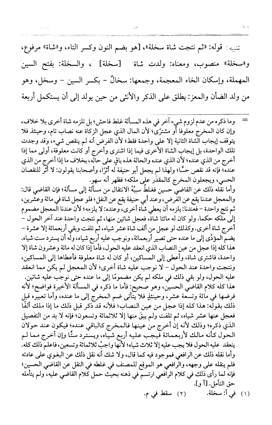 تنبيه: قوله: "ثم نتجت شاة سخلة"، [هو بضم النون وكسر التاء، و"شاة" مرفوع، و"سخلة" منصوب، ومعناه: ولدت شاة [سخلة]، والسخلة: بفتح السين المهملة، وإسكان الخاء المعجمة، وجمعها: سخالٌ – بكسر السين – وسخل، وهو من ولد الضأن والمعز: يطلق على الذكر والأنثى من حين يولد إلى أن يستكمل أربعة