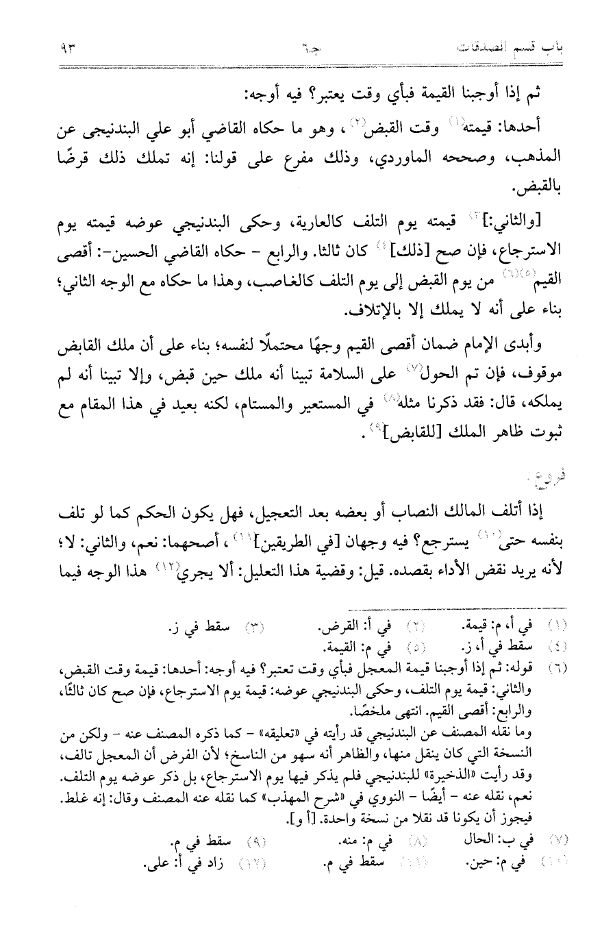 أحدها: قيمته وقت القبض، وهو ما حكاه القاضي أبو علي البندنيجي عن المذهب، وصححه الماوردي، وذلك مفرع على قولنا: إنه تملك ذلك قرضاً بالقبض.