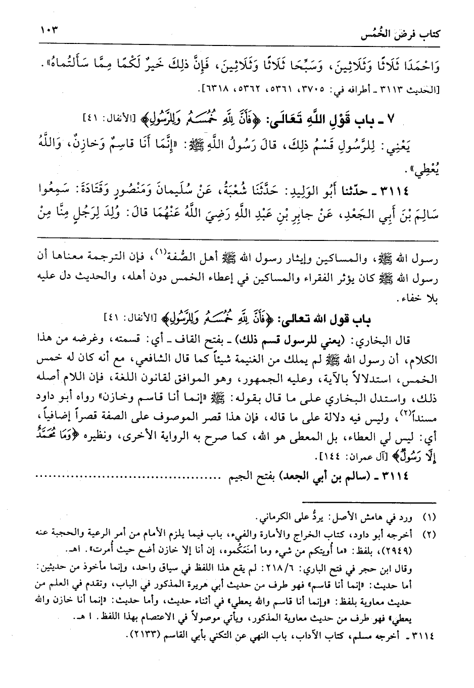 باب قول الله تعالى: {فَأَنَّ لِلَّهِ خُمُسَهُ وَلِلرَّسُولِ} [الأنفال: 41]