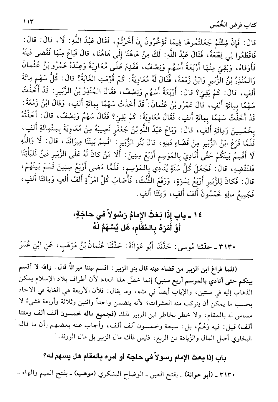 3130 - حَدَّثَنَا مُوسَى حَدَّثَنَا أَبُو عَوَانَةَ حَدَّثَنَا عُثْمَانُ بْنُ مَوْهَبٍ عَنِ ابْنِ عُمَرَ