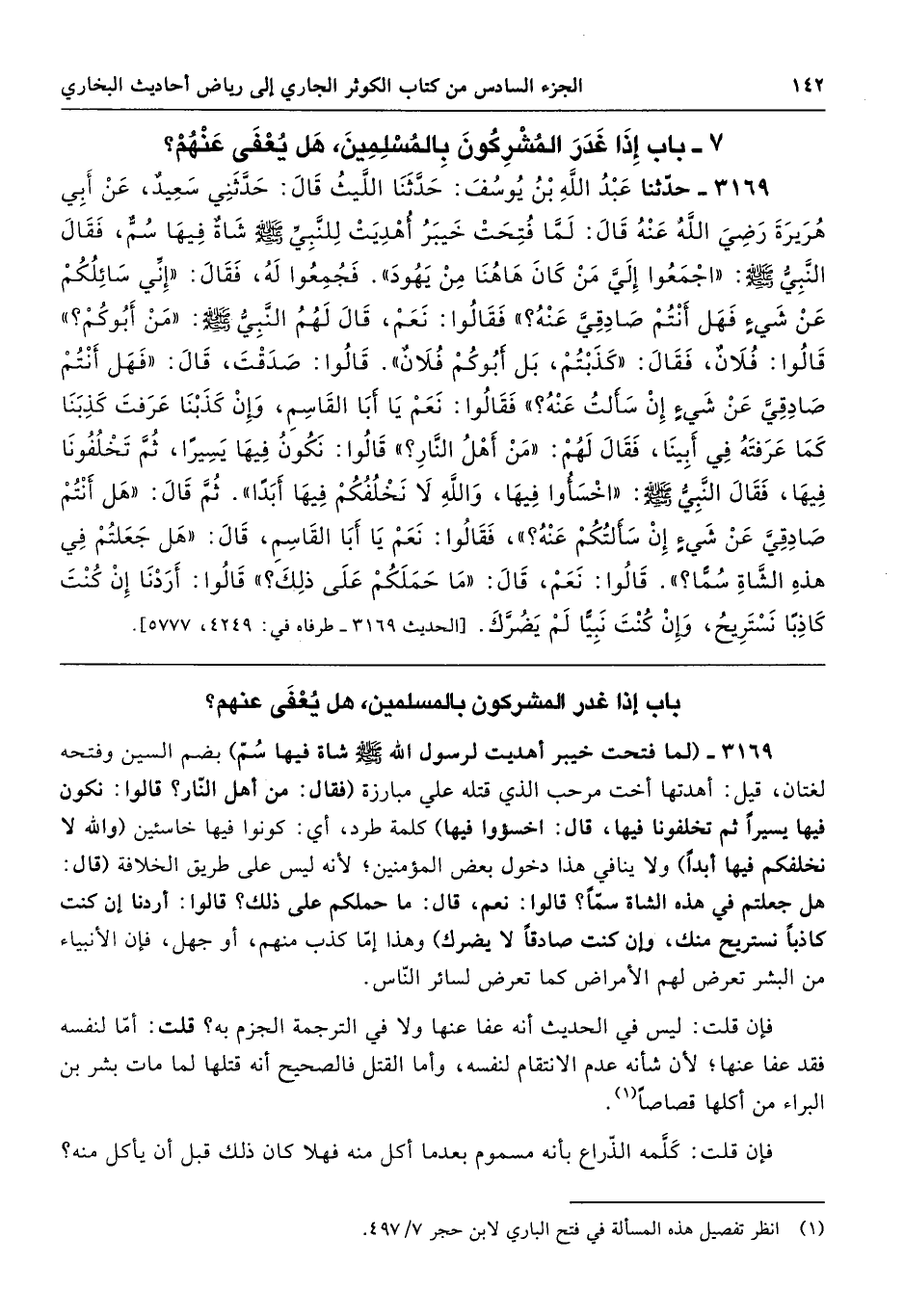 كتاب الكوثر الجاري إلى رياض أحاديث البخاري (اسم الجزء: 6)