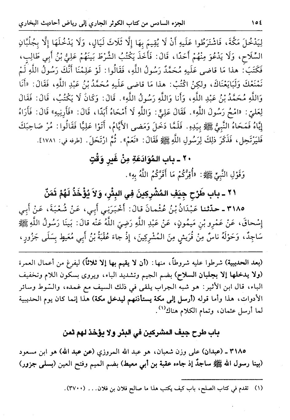 21 - باب طَرْحِ جِيَفِ الْمُشْرِكِينَ فِي الْبِئْرِ وَلاَ يُؤْخَذُ لَهُمْ ثَمَنٌ