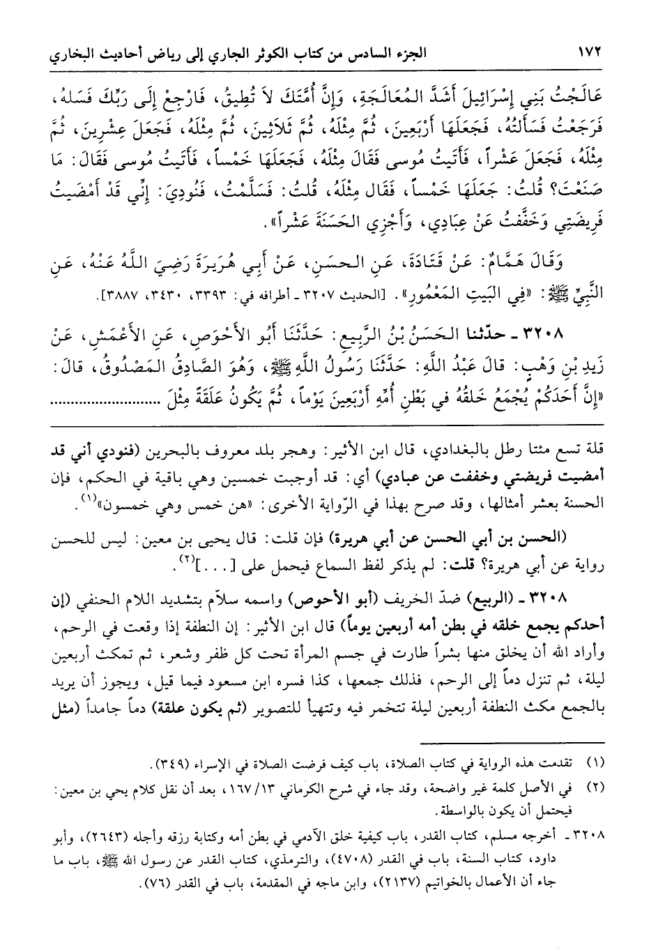 3208 - حَدَّثَنَا الْحَسَنُ بْنُ الرَّبِيعِ حَدَّثَنَا أَبُو الأَحْوَصِ عَنِ الأَعْمَشِ عَنْ زَيْدِ بْنِ وَهْبٍ قَالَ عَبْدُ اللَّهِ حَدَّثَنَا رَسُولُ اللَّهِ - صلى الله عليه وسلم - وَهْوَ الصَّادِقُ الْمَصْدُوقُ قَالَ «إِنَّ أَحَدَكُمْ يُجْمَعُ خَلْقُهُ فِي بَطْنِ أُمِّهِ أَرْبَعِينَ يَوْمًا، ثُمَّ يَكُونُ عَلَقَةً مِثْلَ