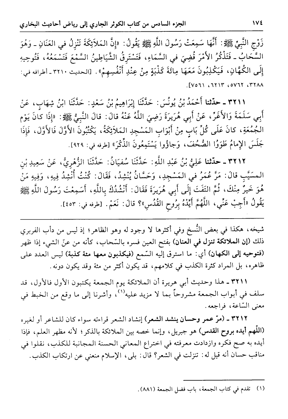 3211 - هذا وحديث أبي هريرة أن الملائكة يوم الجمعة يكتبون الأول فالأول، قد سلف في أبواب الجمعة مشروحًا بما لا مزيد عليه، وأشرنا إلى ما وقع من الخبط في معنى السّاعة، فراجعه.