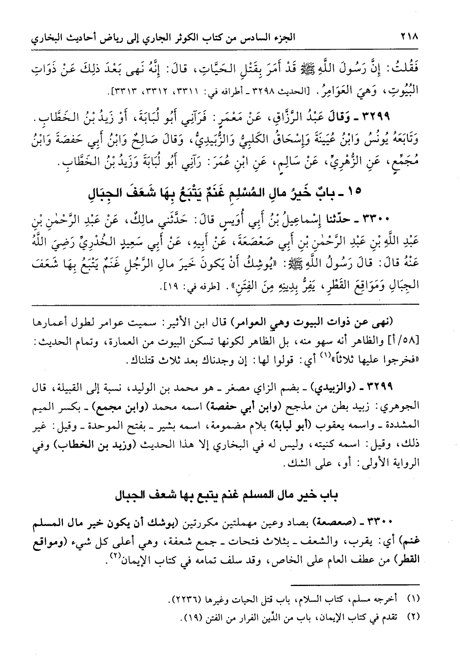 3300 - (صعصعة) بصاد وعين مهملتين مكررتين (يوشك أن يكون خير مال المسلم غنم) أي: يقرب، والشعف -بثلاث فتحات- جمع شعفة، وهي أعلى كل شيء (ومواقع القطر) من عطف العام على الخاص، وقد سلف تمامه في كتاب الإيمان.