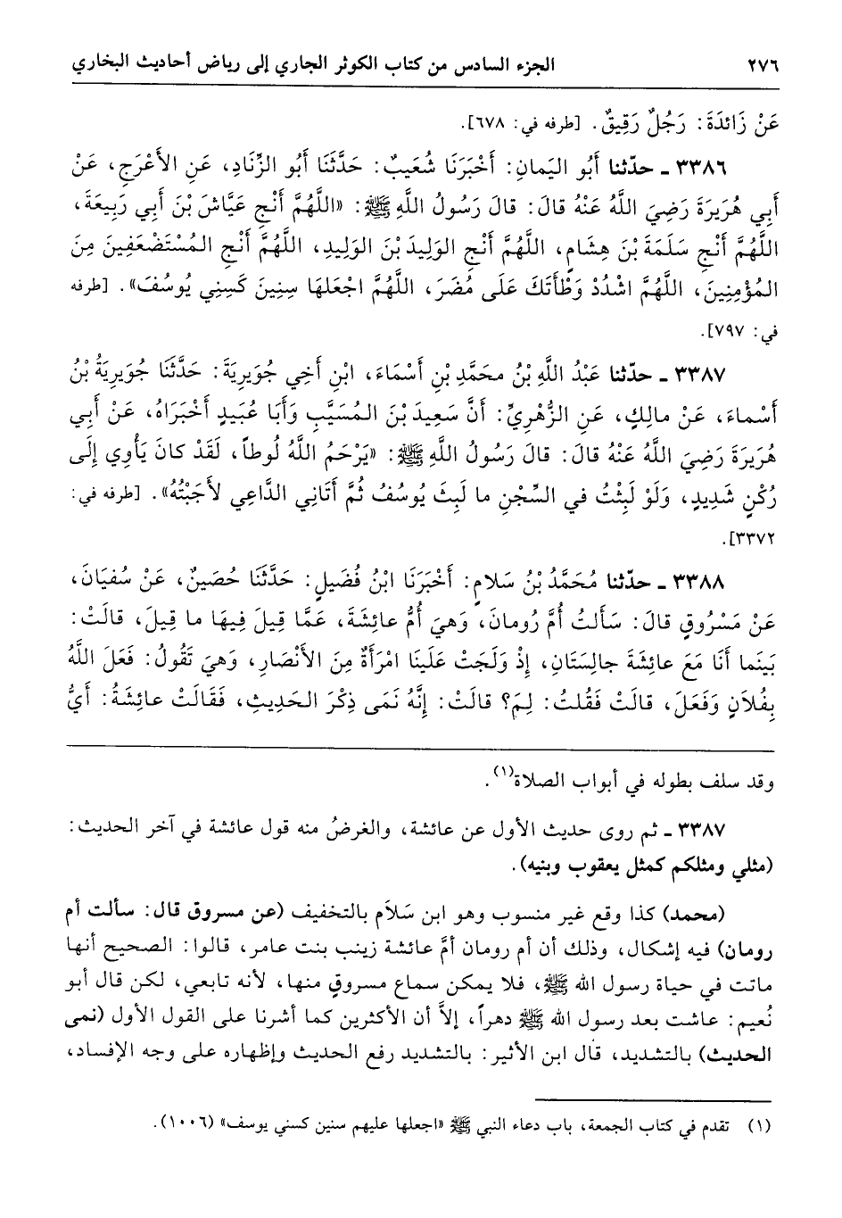 3387 - ثم روى حديث الأول عن عائشة، والغرضُ منه قول عائشة في آخر الحديث: (مثلي ومثلكم كمثل يعقوب وبنيه).