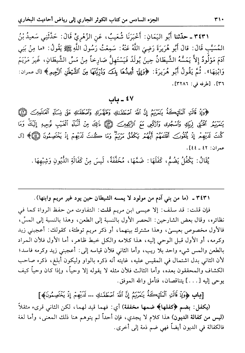 3431 - (ما من بني آدم من مولود لا يمسه الشيطان حين يود غير مريم وابنها).