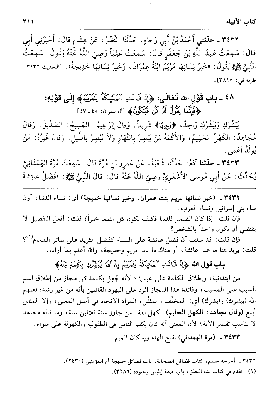 باب قول الله {إِذْ قَالَتِ الْمَلَائِكَةُ يَامَرْيَمُ إِنَّ اللَّهَ يُبَشِّرُكِ بِكَلِمَةٍ مِنْهُ}