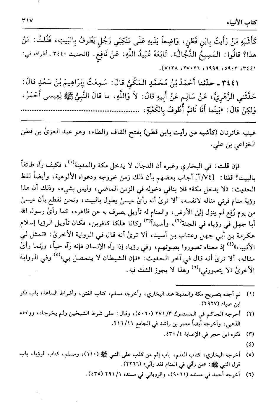 3441 - حَدَّثَنَا أَحْمَدُ بْنُ مُحَمَّدٍ الْمَكِّىُّ قَالَ سَمِعْتُ إِبْرَاهِيمَ بْنَ سَعْدٍ قَالَ حَدَّثَنِى الزُّهْرِىُّ عَنْ سَالِمٍ عَنْ أَبِيهِ، قَالَ لاَ وَاللَّهِ مَا قَالَ النَّبِىُّ - صلى الله عليه وسلم - لِعِيسَى أَحْمَرُ، وَلَكِنْ قَالَ «بَيْنَمَا أَنَا نَائِمٌ أَطُوفُ بِالْكَعْبَةِ،