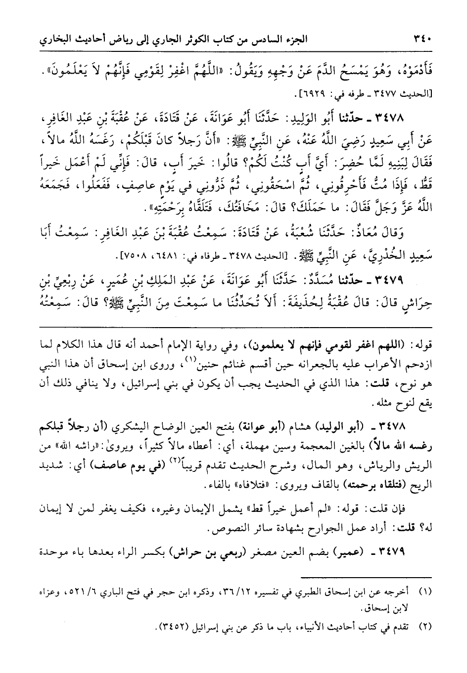 3478 - (أبو الوليد) هشام (أبو عوانة) بفتح العين الوضاح اليشكري (أن رجلًا قبلكم رغسه الله مالًا) بالغين المعجمة وسين مهملة، أي: أعطاه مالًا كثيرًا، ويروى: "راشه الله" من الريش والرياش، وهو المال، وشرح الحديث تقدم قريبًا (في يوم عاصف) أي: شديد الريح (فتلقاه برحمته) بالقاف ويروى: "فتلافاه" بالفاء.