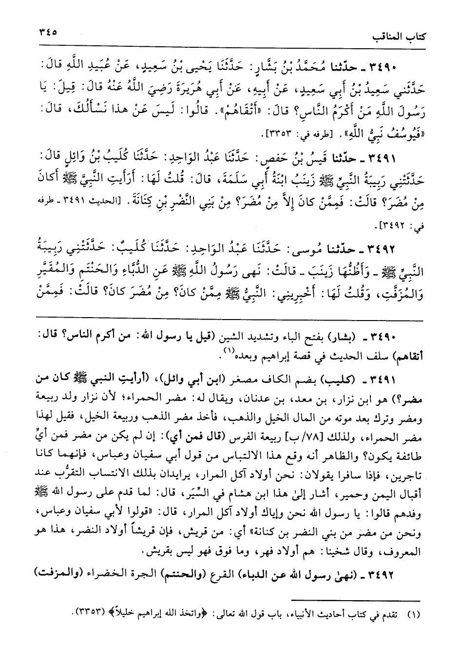 3490 - (بشار) بفتح الباء وتشديد الشين (قيل يا رسول الله: من أكرم الناس؟ قال: أتقاهم) سلف الحديث في قصة إبراهيم وبعده.