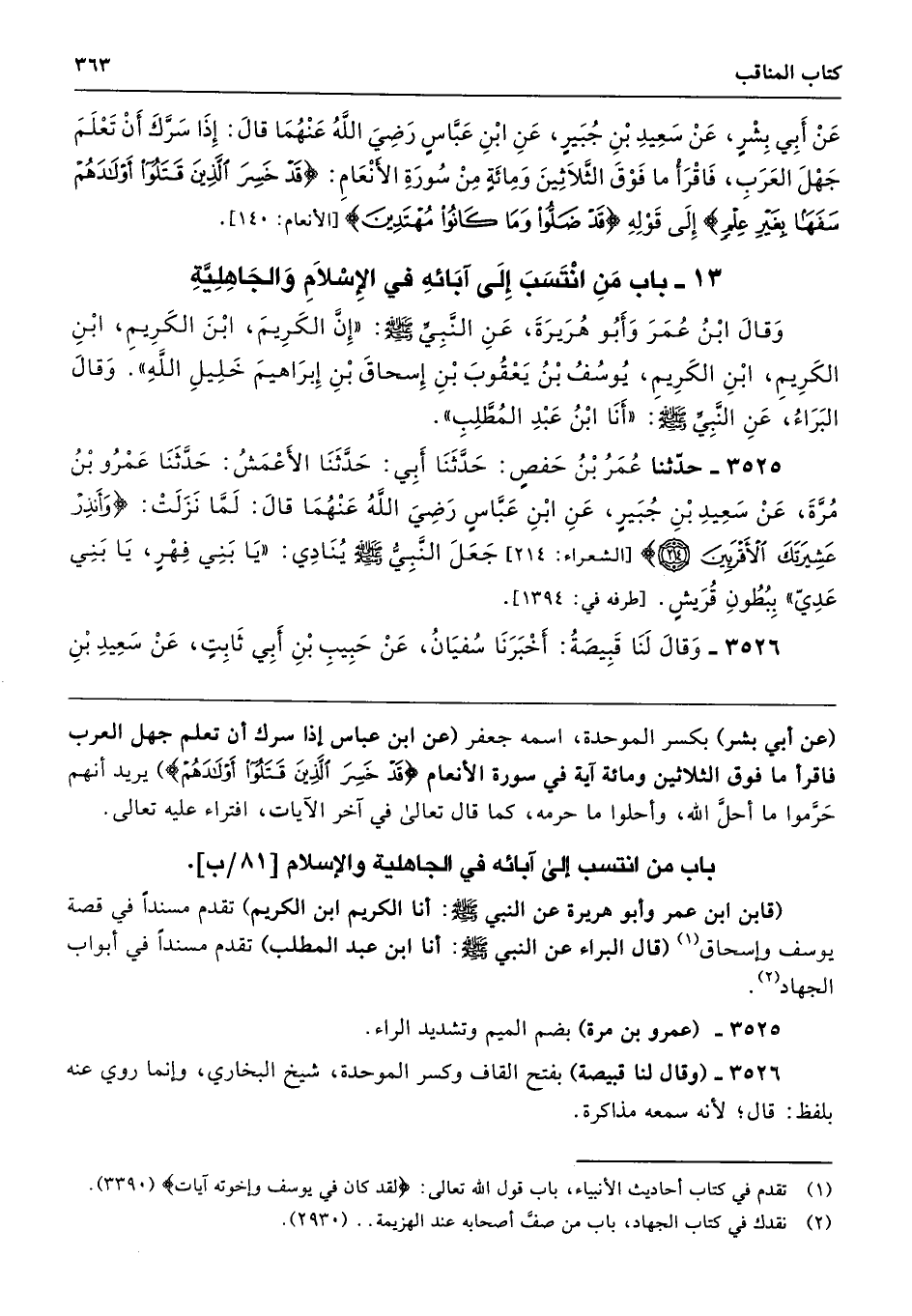 باب من انتسب إلى آبائه في الجاهلية والإسلام