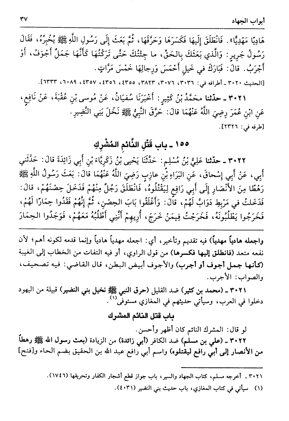 3021 - (محمَّد بن كثير) ضد القليل (حرق النبي - صلى الله عليه وسلم - نخيل بني النضير) قبيلة من اليهود دخلوا في العرب، وسيأتي حديثهم في المغازي مستوفى.