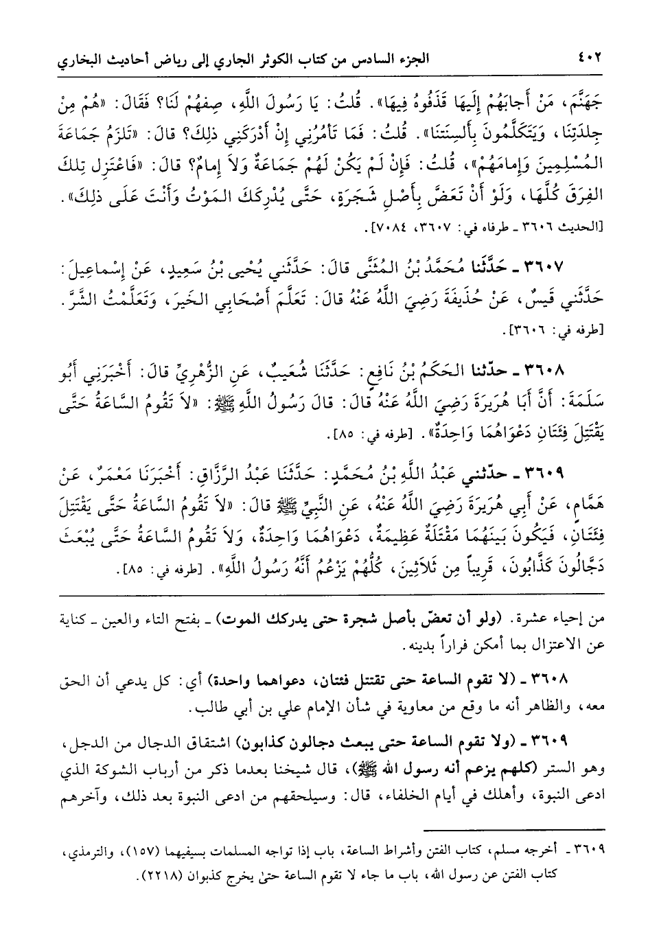 3608 - (لا تقوم الساعة حتى تقتتل فئتان، دعواهما واحدة) أي: كل يدعي أن الحق معه، والظاهر أنه ما وقع من معاوية في شأن الإمام علي بن أبي طالب.