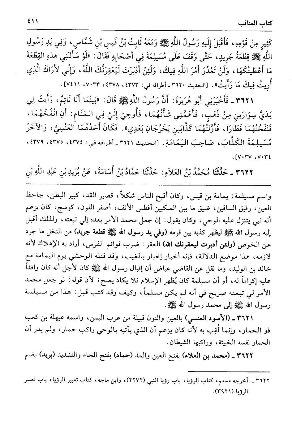 3622 - (محمد بن العلاء) بفتح العين والمد (حماد) بفتح الحاء والتشديد (بريد) بضم