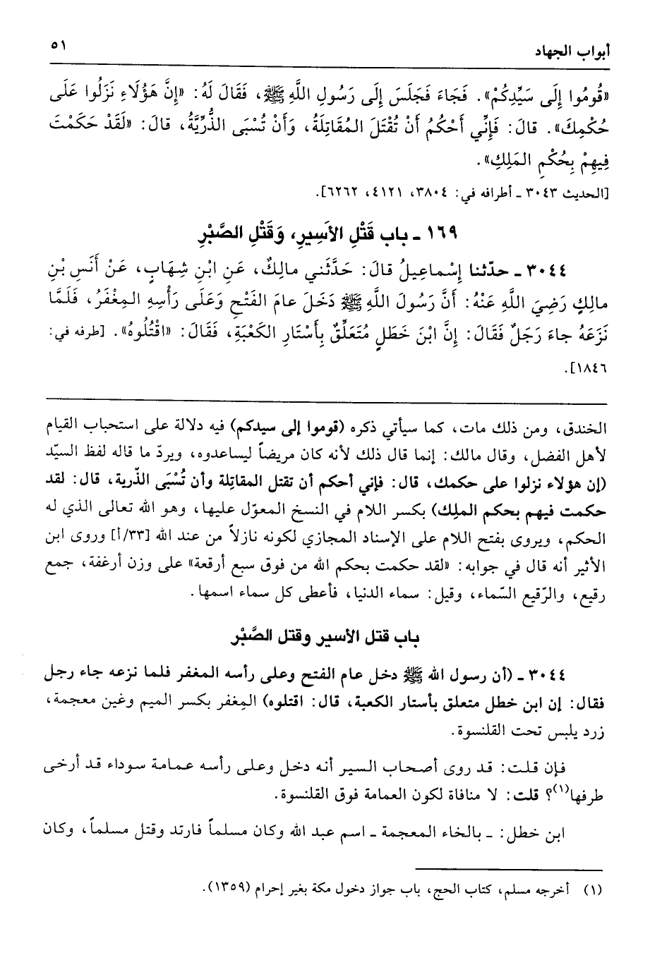169 - باب قَتْلِ الأَسِيرِ وَقَتْلِ الصَّبْرِ